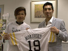 “バスケ好き”森福投手がライジング福岡の仲西選手とエール交換!