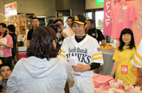 森福投手と鳥越コーチが「ピンクリボン運動」を呼びかけ