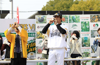 秋山監督、覇権奪回を祈願して日本一早いお米の種蒔き。宮崎特産品の贈呈も
