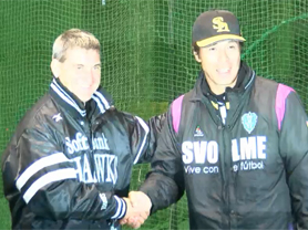 秋山監督とアビスパ福岡・プシュニク監督がエール交換。ともに福岡でVを!