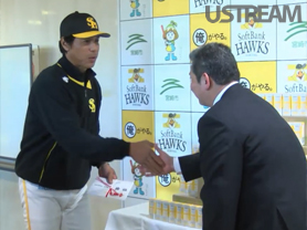秋山監督「美味い!」もう一杯! キューサイはちみつ青汁を贈呈いただきました