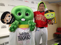 鶴岡選手が「ガチャピン」との再会を喜ぶ!