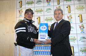 工藤監督「甘いものは大好き」ドーナツ贈呈式