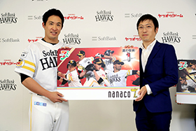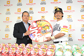 松田選手が「赤いきつね」「緑のたぬき」贈呈式に