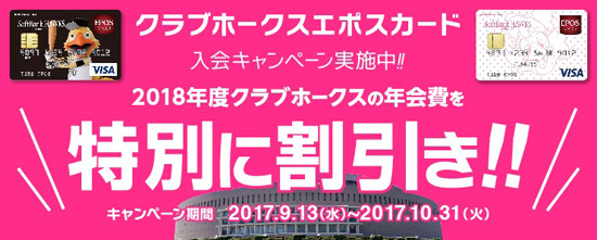 クラブホークスエポスカード新規ご入会キャンペーン!