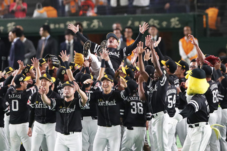 球団初!3年連続日本一を達成。工藤監督、感激の胴上げ