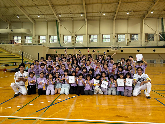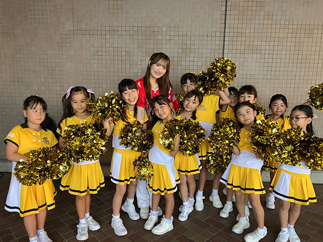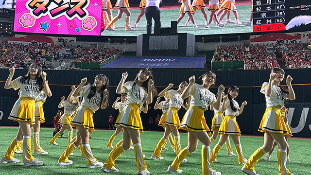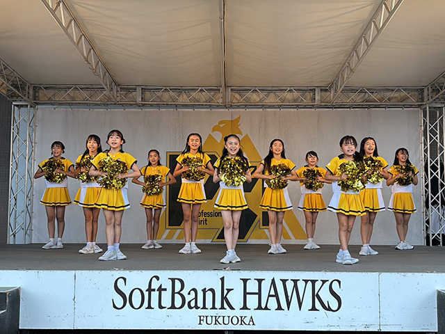 この日は夏休み期間限定の短期特別クラスもホークスラッキーセブンでパフォーマンスを披露し、NAGI先生と一緒に練習してきた「いざゆけ若鷹軍団」を披露し、力強いパフォーマンスでスタジアムを盛り上げました。