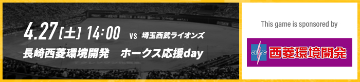 初めてのホークスのゲームスポンサー、福岡ソフトバンクホークスの勝利を願って、応援しましょう!
