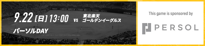 9/22(日)の対東北楽天ゴールデンイーグルス戦は、パーソルグループがゲームスポンサーとなり、「パーソルDAY」 を開催します。当日入場ゲートにて球団職員の仕事内容など情報満載のタブロイド紙を配布いたします!