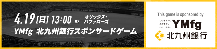 4月19日(日)のオリックス・バファローズ戦は、「YMfg 北九州銀行スポンサードゲーム」として開催します!