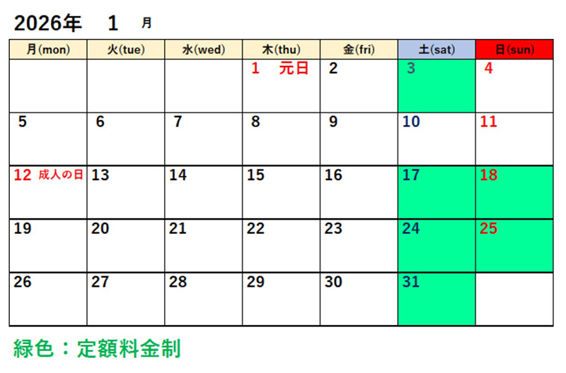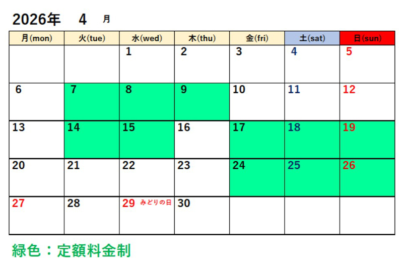 | 料金制度 | 定額制(前払い) | 時間料金制(後払い) | |