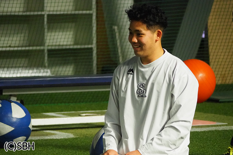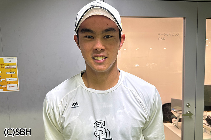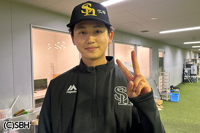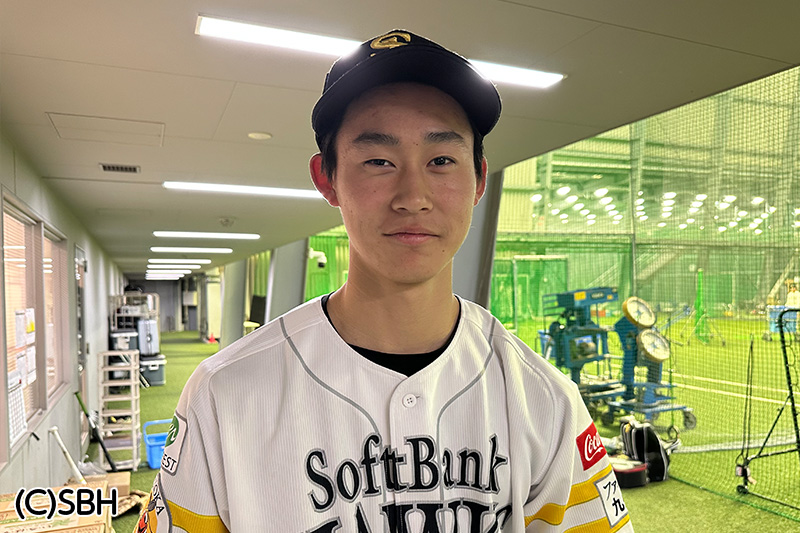ホークスは入団する前から、みんな仲が良くてレベルがすごく高いイメージでした。寮に入ってキャンプなどいろいろ見させていただきましたが、やっぱりそういう部分ではイメージどおりでした。こんなにレベルの高い選手でも育成なのかと驚くこともありますし、1軍で活躍されている選手のピッチング・バッティングは今まで見たことがないくらいすごいです。