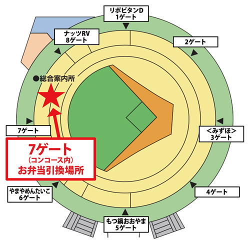 - お弁当引換券をご観戦当日にご持参いただき、入場後指定の「お弁当引換場所」にてお弁当と交換してください。