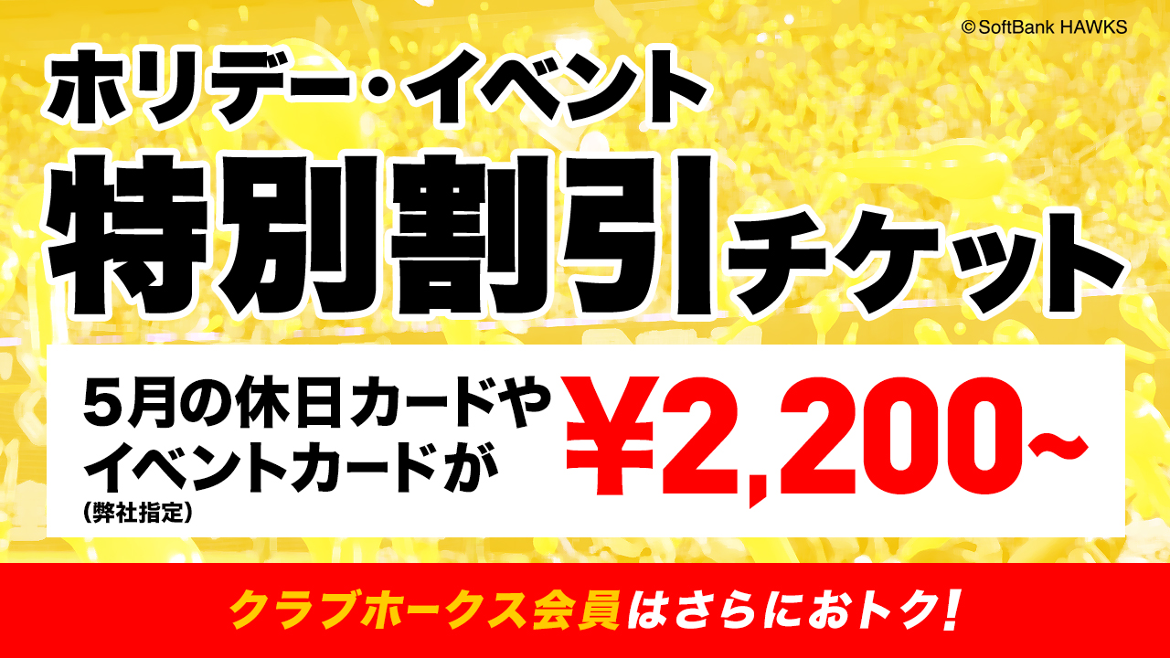 土日祝日やイベントデーの試合をおトクに観戦したいというファンの皆様のために「ホリデー・イベント特別割引チケット」を販売します。