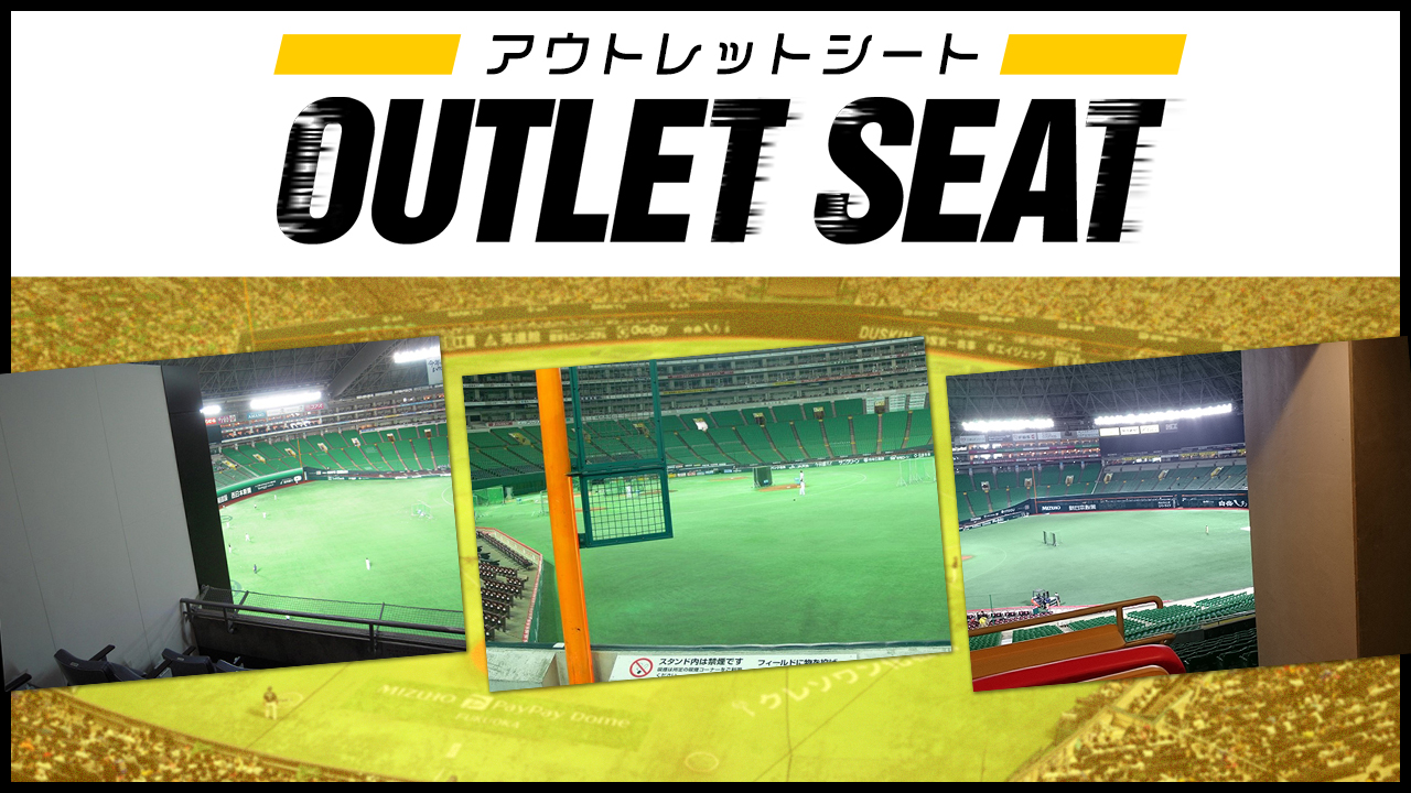 「アウトレットシート」はホームランポールや柱などでグラウンドの一部やホークスビジョンが見えない、または見えづらいお席などで試合観戦をおトクにお楽しみいただけます!また、応援団付近で、大きな音や旗を気にせず、熱い応援をしていただける方もおトクに購入いただけます!