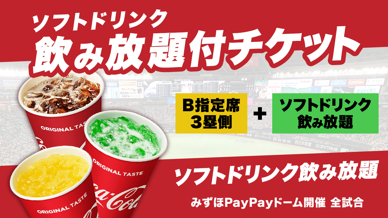 レギュラーシーズンでは入手困難なコカ・コーラシートを2026年のオープン戦限定のおトクな価格で販売します。選手たちと同じ目線で迫力のプレーを感じることができる、【オープン戦限定】コカ・コーラシート特別チケットで2026年型のホークスの試合をお楽しみください。