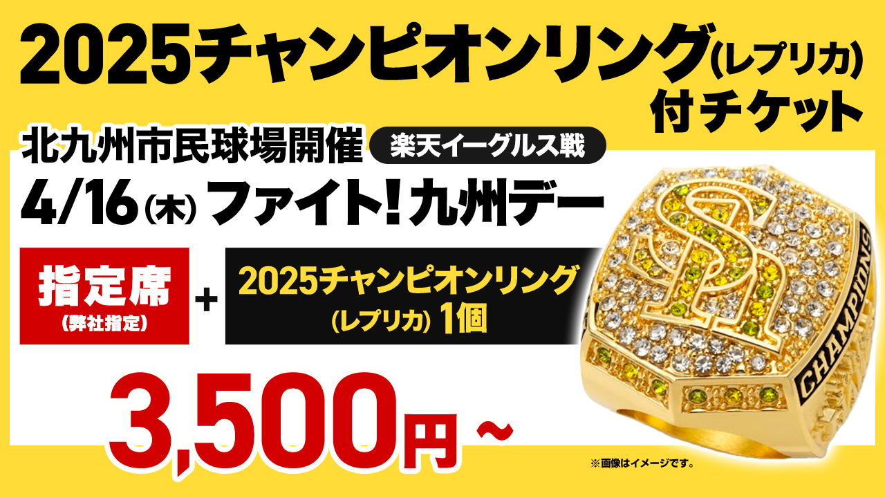 みずほPayPayドーム福岡での開幕第2戦目で入場者全員に配布する「2025チャンピオンリング(レプリカ)」が付いたチケット