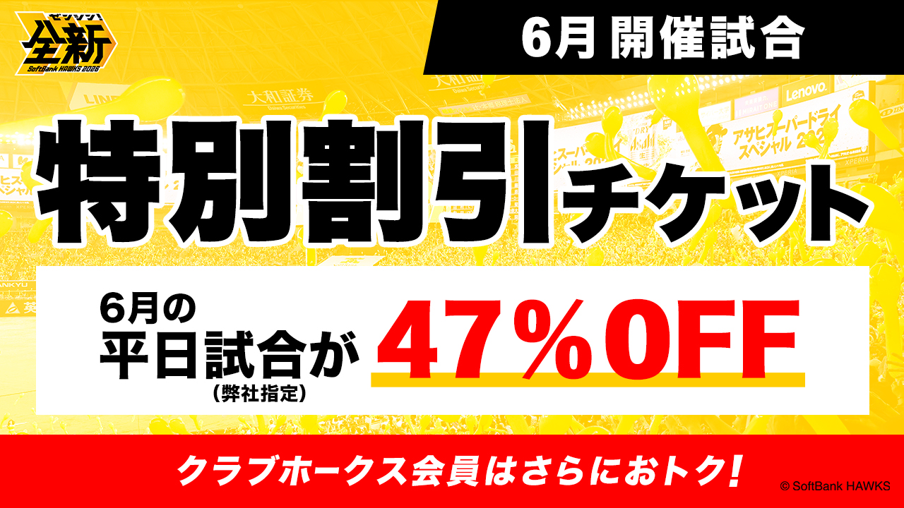 9月10日(木)までのみずほPayPayドーム福岡開催の公式戦を約49%OFFで観戦できるおトクなチケット