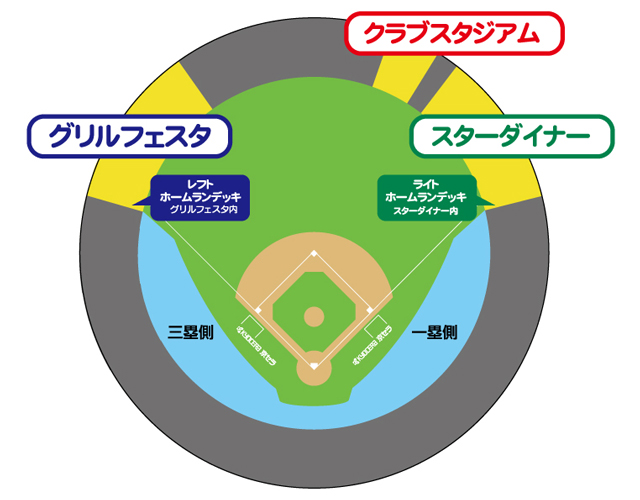 - お料理食べ放題の提供時間は、試合開始1時間前~7回裏終了までとなります。