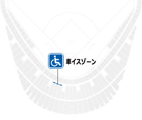 - ※車イスゾーンは計6名。付添席は、車イス席横にパイプ椅子観戦で各1席ずつまで。
