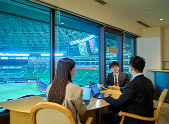 職場の同僚やお取引先と早めに入場し、会議やミーティングに活用。プレイボールと同時に懇親会へ。
